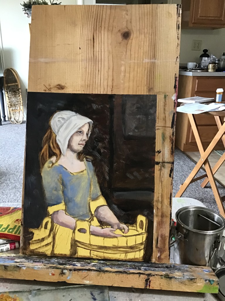I was back at it after a short break to consider and plan the next few paintings. Painting like a true weekend warrior, between chores, only fitting that I call this one “Chores”. Special Thanks to my friend Mark Tessier for the use of his outstanding photo to use as reference!