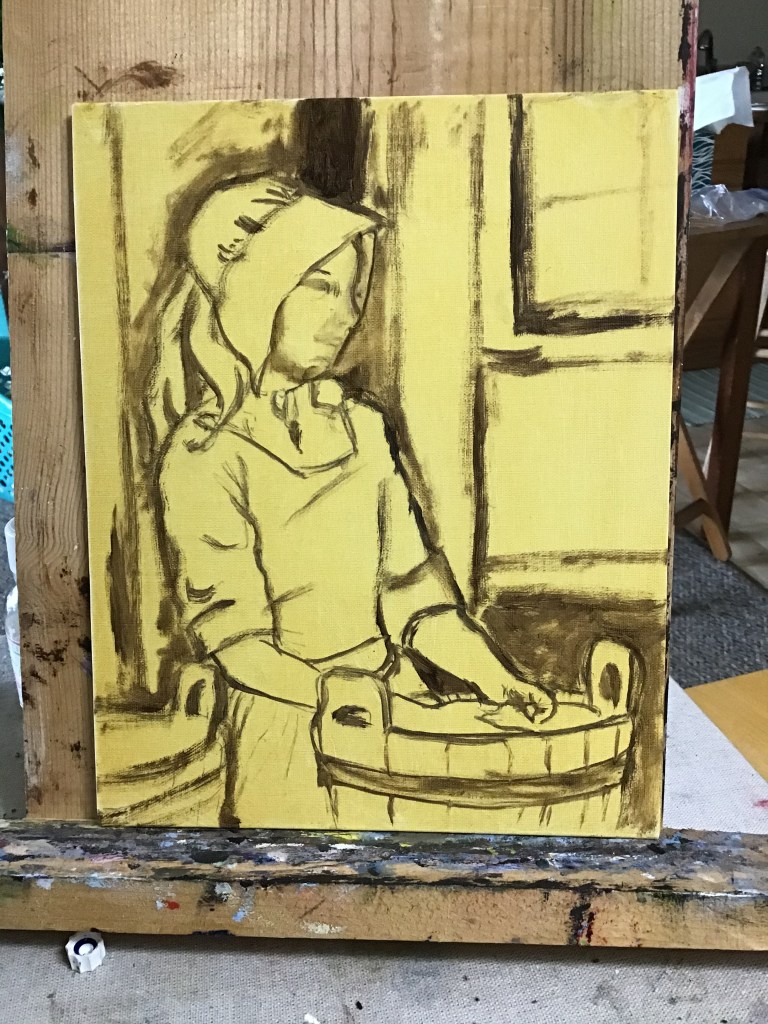 I remembered to take process photos again. Little does the public know how many times we plan, thumbnail, sketch, block in, paint, wipe out, paint again, change our minds, add something, take something out, call it done…call it not done, and finally sign our name. 😅