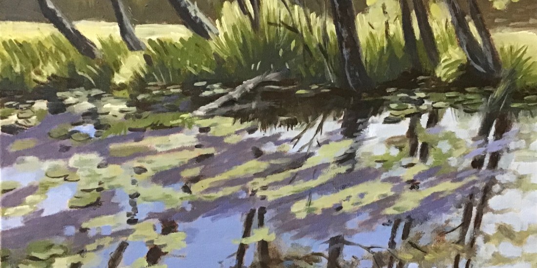 Inspired by some recent photos I took around Duluth and the Northshore, I thought I would try to paint this backlit slough. It was bright and color filled and I knew it would be a challenge to keep my painting loose (I struggle with this).