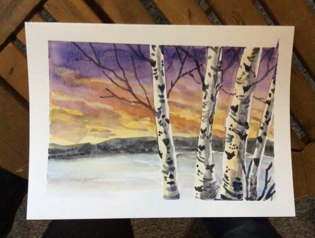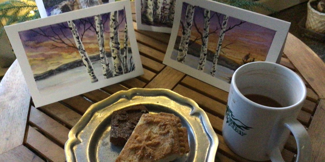 After a bit of house cleaning, decorating with a bit of greenery, and baking shortbread cookies, I pulled out my water color paints. I always like to make a few of my Holiday cards for a few special friends and family. The process really helps to get me into the spirit of things.