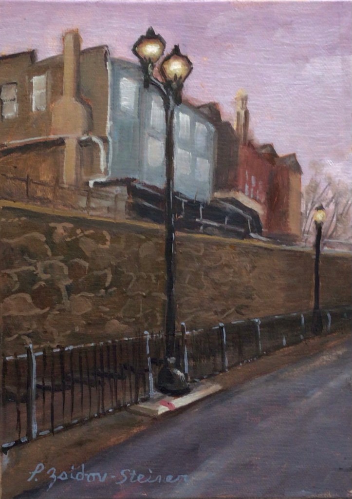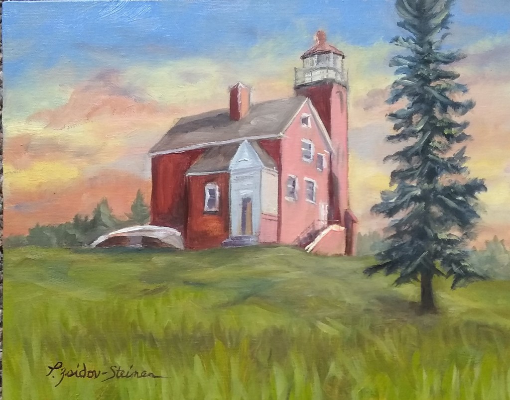Duluth 7 am, oil on gallery 24 x 24, wrapped canvas, $1300Out of Order, 20 x 20 oil on gallery wrapped canvas, $1250 SOLDApril. 18 x 24, oil on stretched canvas, $1250Morning on Tower Avenue, 8 x 10 oil on linen panel, $380Two Harbors Depot, 8 x 10 oil on linen panel, Sold