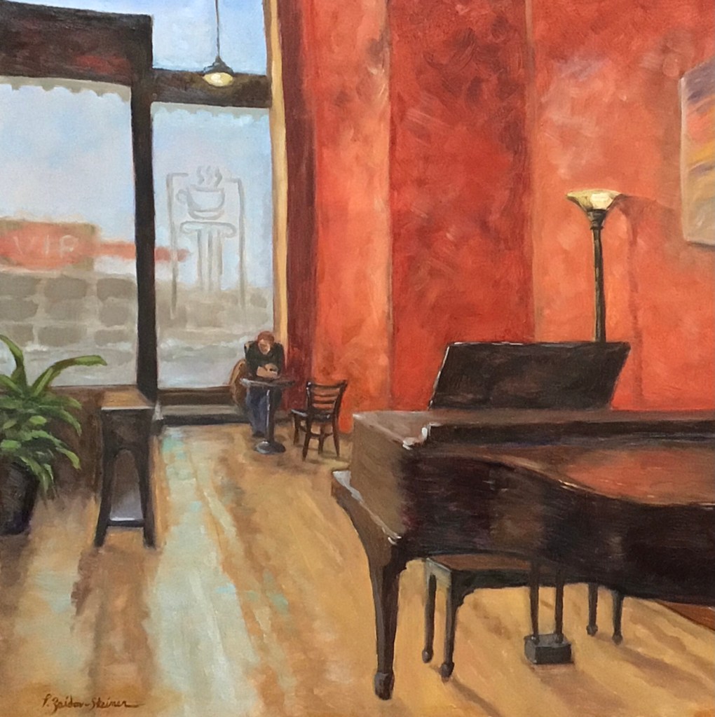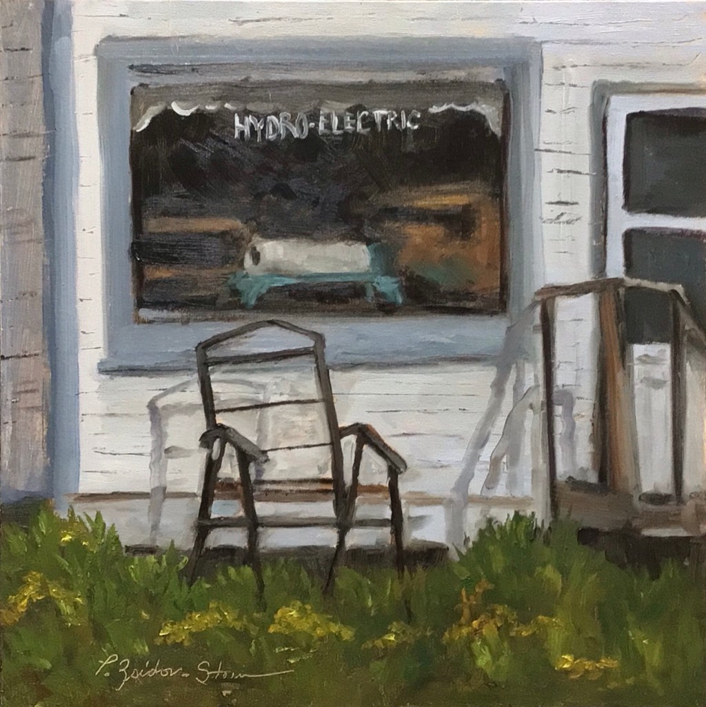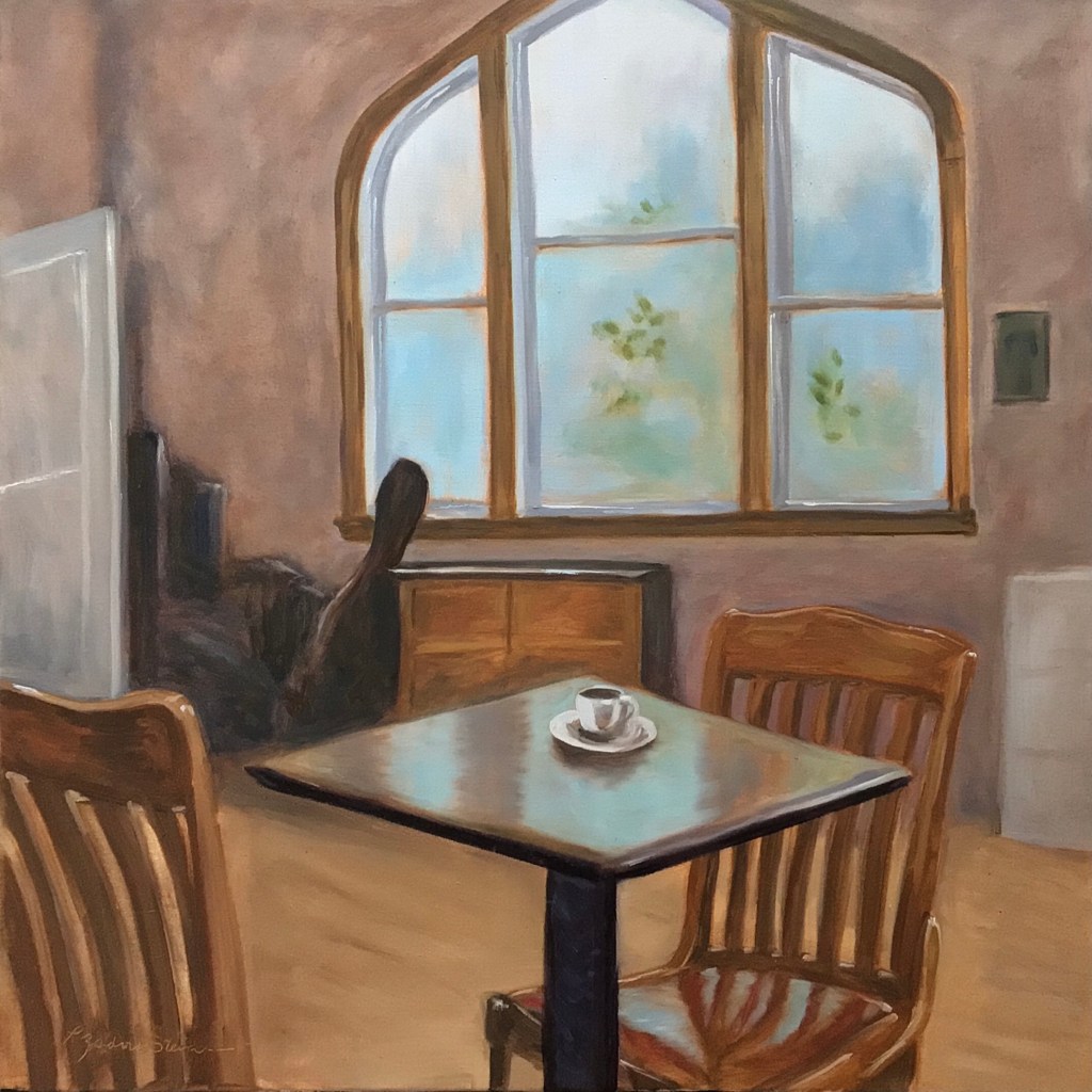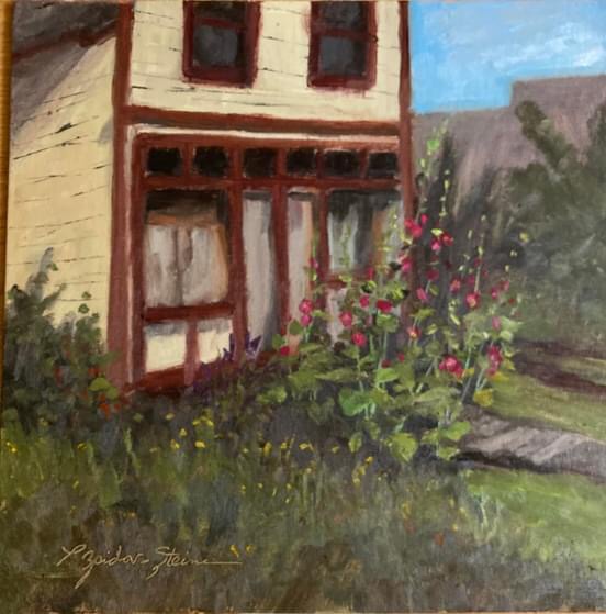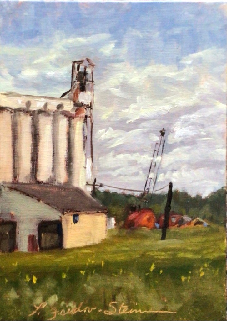 Coffee for One, 24 x 24 oil on gallery wrapped canvas, $1300Salvadors Last Ride, 24 x 24 oil on gallery wrapped canvas $1300March. 18 x24 oil on stretched canvas, $1250 SOLDSuperior Silos, 5 x 7 oil on linen panel, SOLDRemembering Hollyhocks, 10 x 10 oil on linen panel, $350