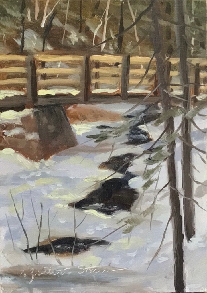 A collection of small works under 8 x 10 inches. All pieces are framed.
